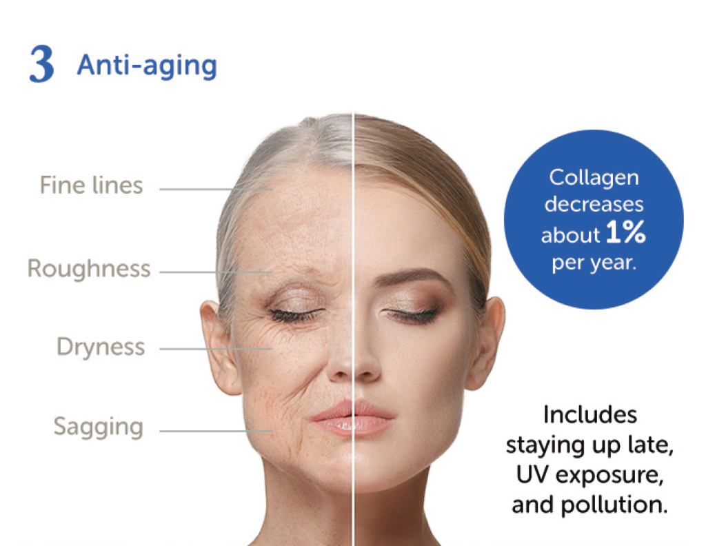 Anti-aging, improves normal cellular function, reduce pigmentation.